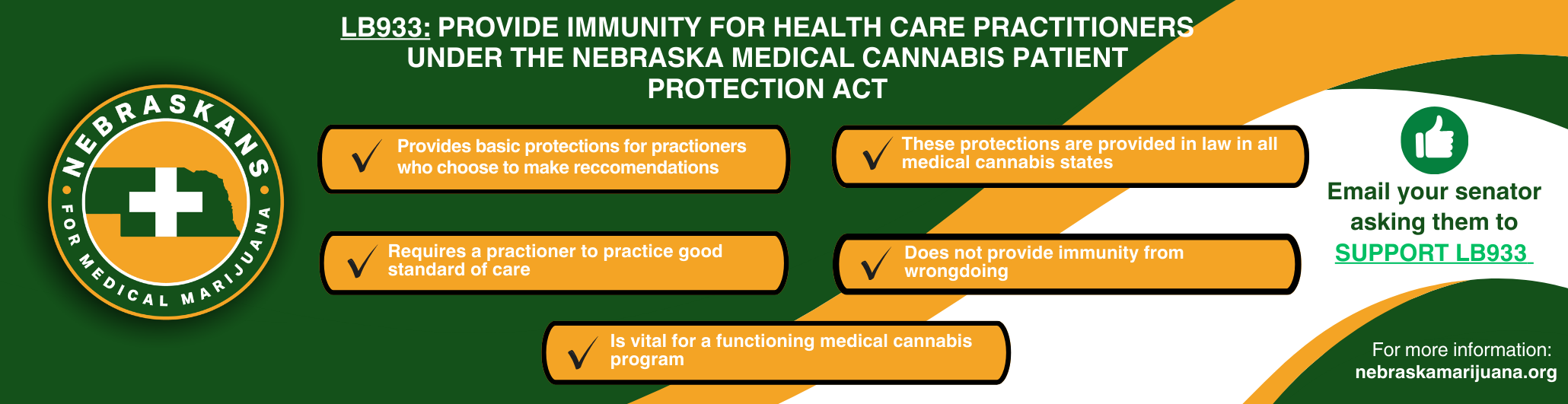 LB933, a bill that is VITAL to have a functioning medical cannabis program is up for debate by the Nebraska Legislature this week! Email your senator NOW and ask them to SUPPORT LB933!